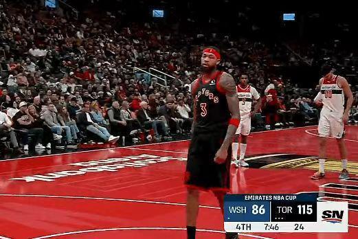 猛龍帶著28分領(lǐng)先優(yōu)勢(shì)進(jìn)入第四節(jié)比賽,末節(jié)開局猛龍擴(kuò)大30分領(lǐng)先優(yōu)勢(shì),由于雙方之間實(shí)力相差懸殊,且兩隊(duì)比分差距太大,比賽已經(jīng)提前失去勝負(fù)懸念。雙方換下主力球員進(jìn)入垃圾時(shí)間,最終猛龍輕松大勝奇才收獲6連勝。