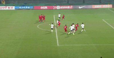 精彩進(jìn)球:第90+3分鐘,中國隊開出定位球,張伯霖補(bǔ)射入網(wǎng)