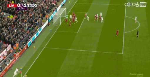第33分鐘,森林開(kāi)出角球,穆里略抽射破門!利物浦0-1落后!