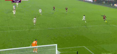 第12分鐘,阿雷奧拉長(zhǎng)傳助攻威爾遜凌空低射破門,西漢姆聯(lián)1-0